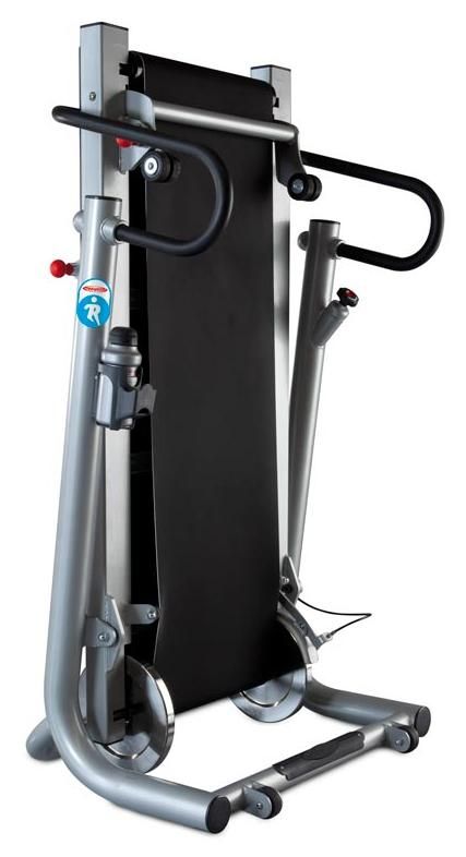 - Экономия пространства. Race Walker можно легко зафиксировать с помощью безопасной системы блокировки дорожки. Она обеспечивает захват со стороны рукоятки, благодаря чему можно установить сложенную дорожку вплотную к стене.