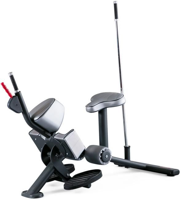 Положение ног надежно фиксируется с помощью нескользящих педалей, валика и антропометрических упоров для голеней и бедер. Благодаря всем этим конструктивным особенностям атлет без труда совершает развороты корпуса! Стартовое положение рукояти легко настраивается с помощью удобного механизма. Какими бы антропометрическими данными вы не обладали, занятия на этом тренажере будут для вас комфортными. Увеличенная площадь установки тренажера на полу гарантирует его стабильное положение даже во время занятий крупногабаритных атлетов.