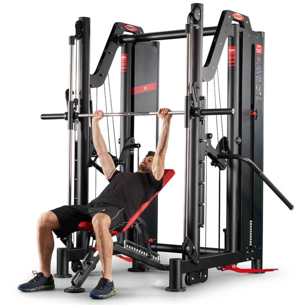 Panatta 1SC110 — представляет собой эволюционную разработку классического "Смита" и отличается двумя независимыми направляющими, которые позволяют тренироваться в полной безопасности - без использования блинов. Однако, при желании можно использовать данный тренажер вместе с блинами, максимально допустимая нагрузка составляет 430 килограмм.