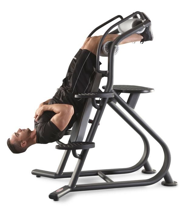 Силовой тренажер без механизма регулирования нагрузки для тренировки с собственным весом; выполняемое упражнение – подъем туловища из положения вис вниз головой. Упражнение предназначено для развития нижней части пресса. Тренажер в значительной степени соответствует классическому римскому стулу.