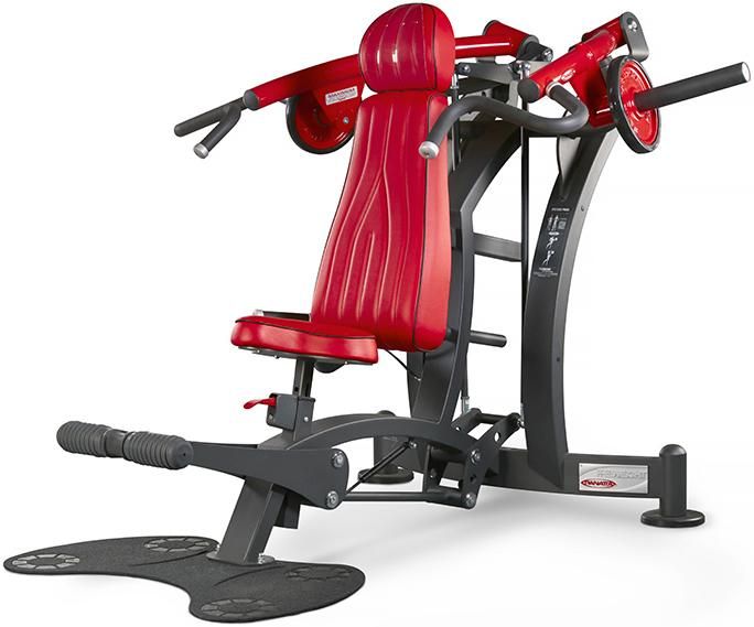 Использование атлетических-дисков в качестве отягощений создает максимально естественную нагрузку на мышцы из возможных при занятии на тренажере. Упор для ног помогает атлету надежнее зафиксироваться во время упражнения, а длинные рукояти дают возможность подобрать наиболее удобный хват для занятий. Изменить высоту сиденья можно одним движением, использовав удобный механизм!